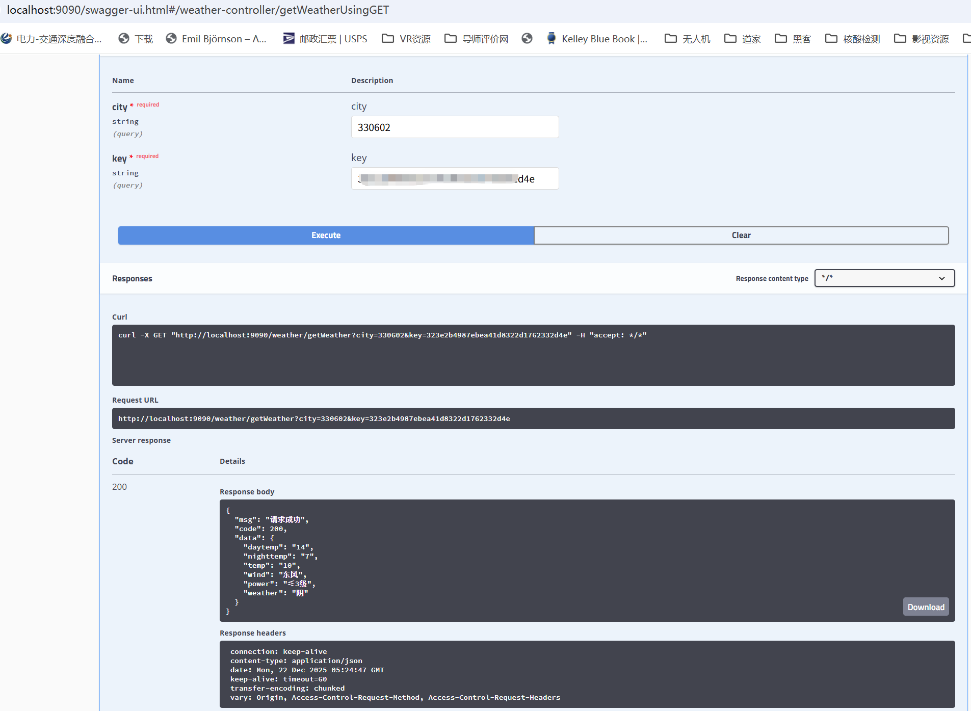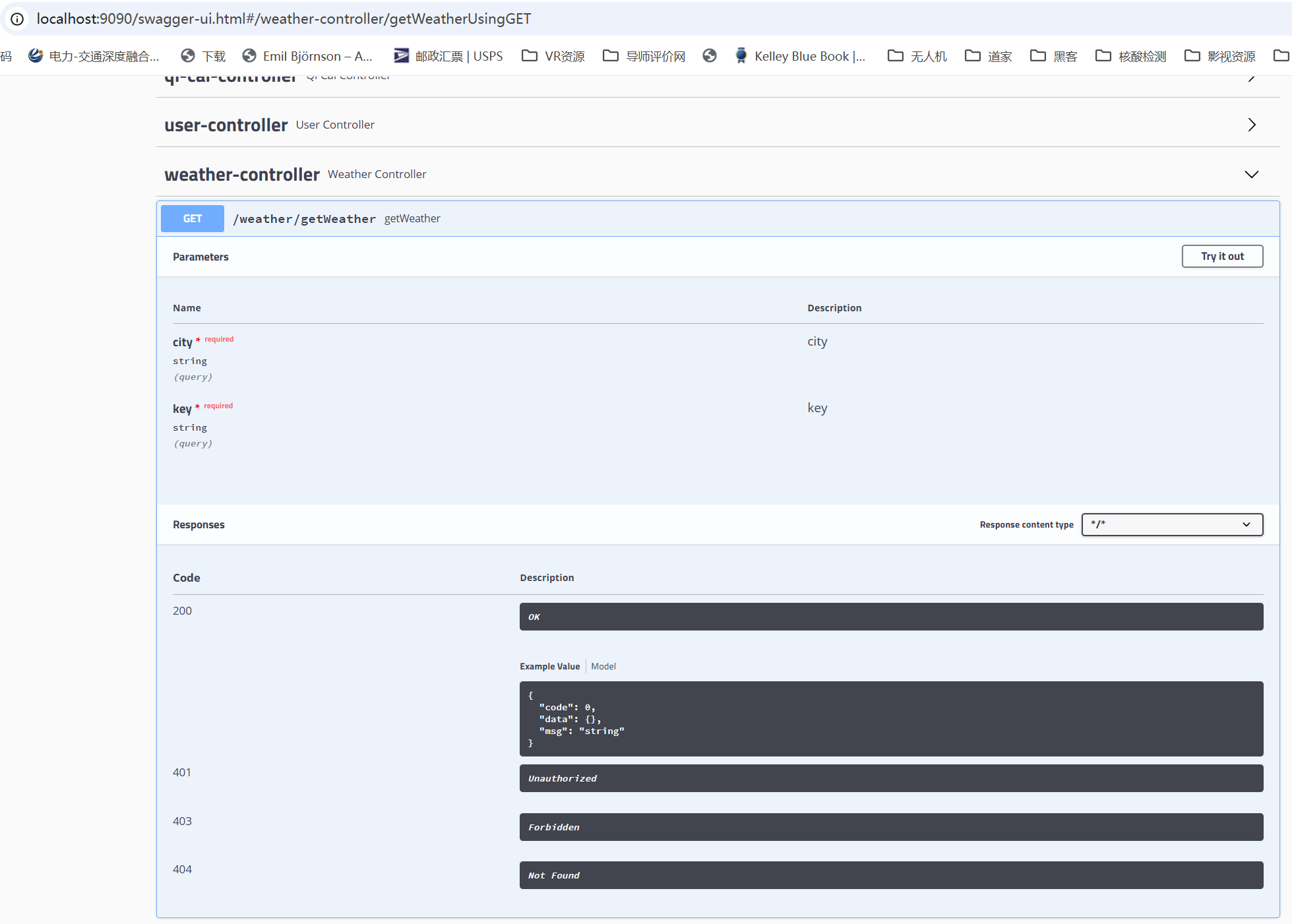 在运行java -jar qicai-1.0.jar之后访问http://localhost:9090/swagger-ui.html#/weather-controller