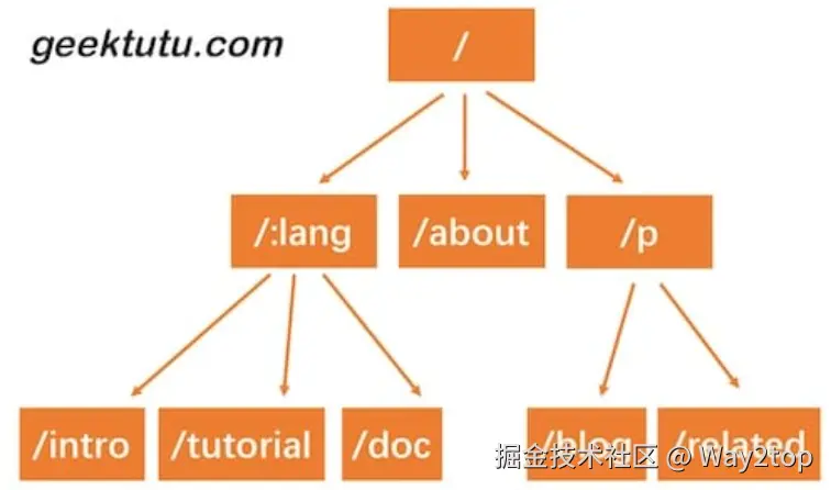 HTTP请求的路径恰好是由/分隔的多段构成的,因此,每一段可以作为前缀树的一个节点。我们通过树结构查询,如果中间某一层的节点都不满足条件,那么就说明没有匹配到的路由,查询结束。