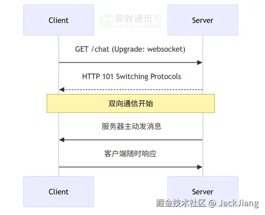 原理:在客户端与服务器之间建立一条全双工的 TCP 长连接,双方可随时互相推送数据。