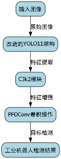 我们的系统基于改进的YOLO11架构,结合了C3k2模块和PFDConv卷积操作,专门针对工业机器人的识别和检测任务进行了优化。
