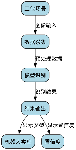 我们的工业机器人识别系统采用模块化设计,主要包括数据采集与预处理模块、模型训练模块、推理识别模块和结果可视化模块四个核心部分。