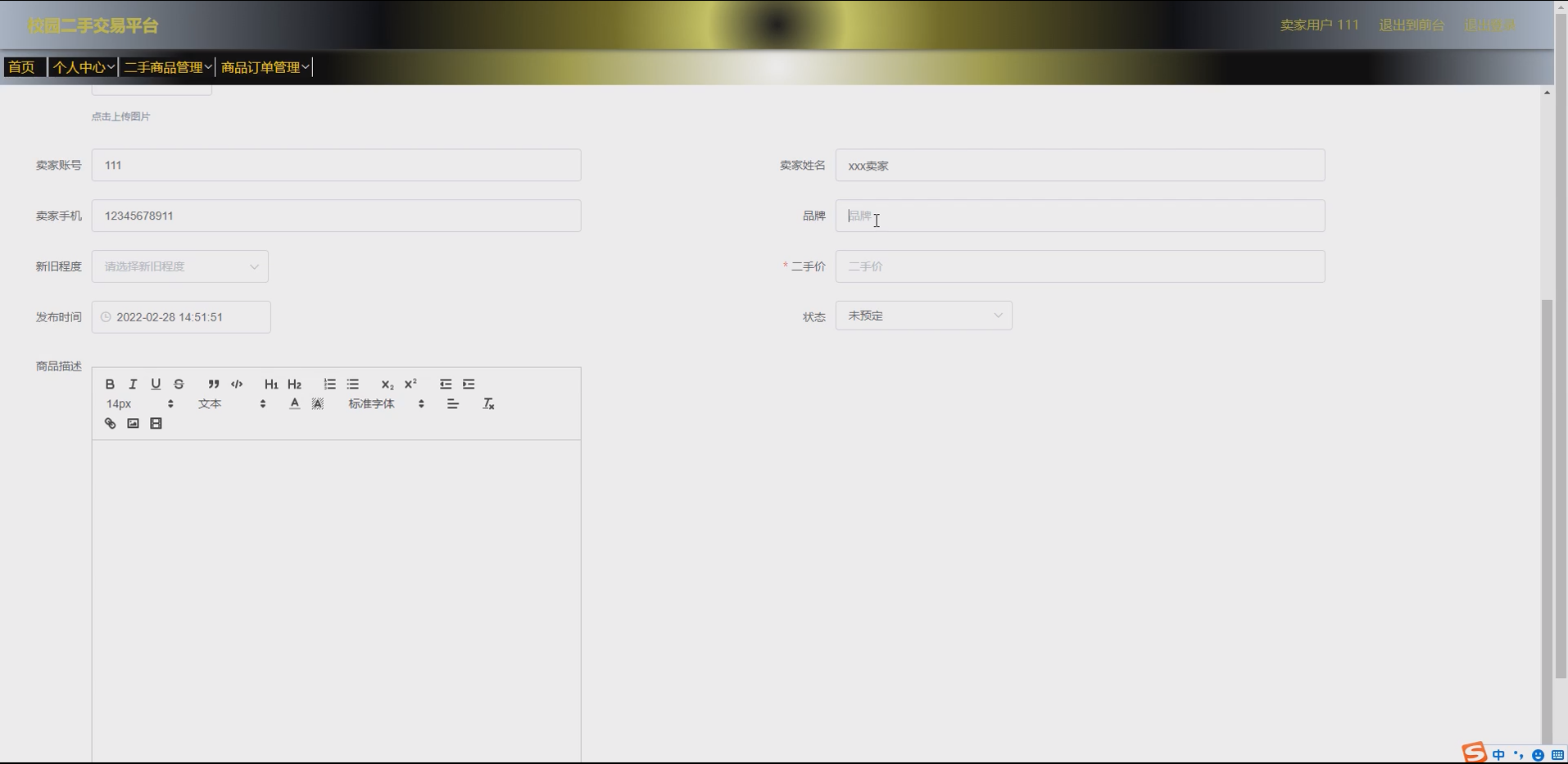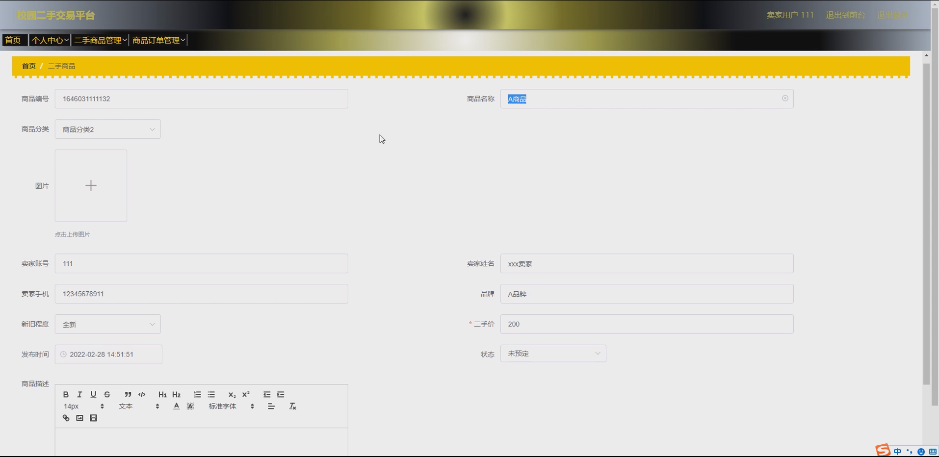 二手商品模块:实现卖家发布商品信息、更新商品状态、回复买家咨询,用户浏览商品、收藏商品、查询商品等功能;