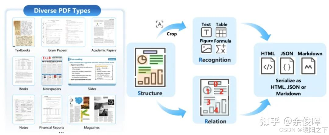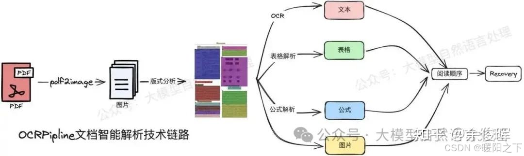 本周学习了解了文档解析的多模态大模型。pipline式、两阶段式和端到端,如下图所示。