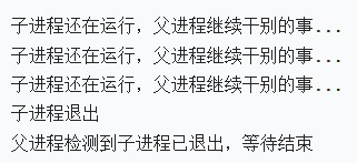 printf("子进程还在运行,父进程继续干别的事...\n");
