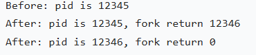 printf("After: pid is %d, fork return %d\n", getpid(), pid);