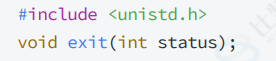 参数:status定义了进程的终止状态,父进程通过wait来获取该值、