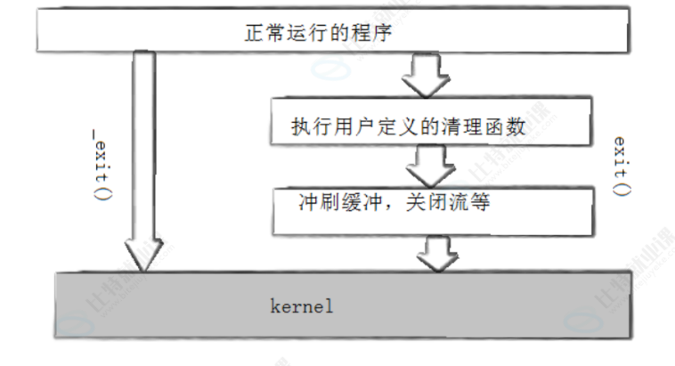 exit函数最后也会调用_exit,但在调用_exit之前,还做了其他工作: