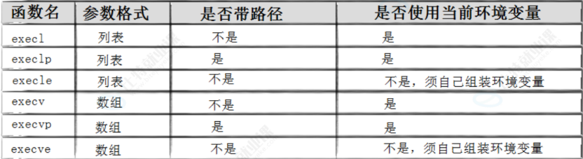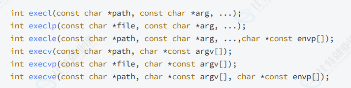 这些函数如果调用成功则加载新的程序从启动代码开始执行,不再返回