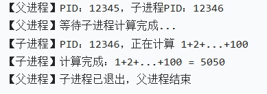 printf("【子进程】计算完成:1+2+...+100 = %d\n", sum);