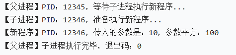 printf("【父进程】PID:%d,等待子进程执行新程序...\n", getpid());