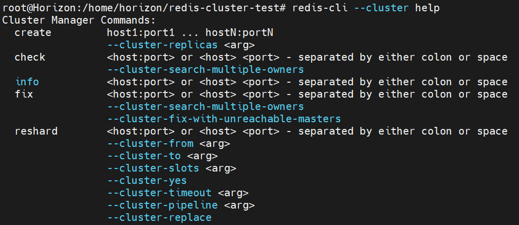 redis-cli --cluster 提供了很多操作集群的命令,可以通过下面方式查看: