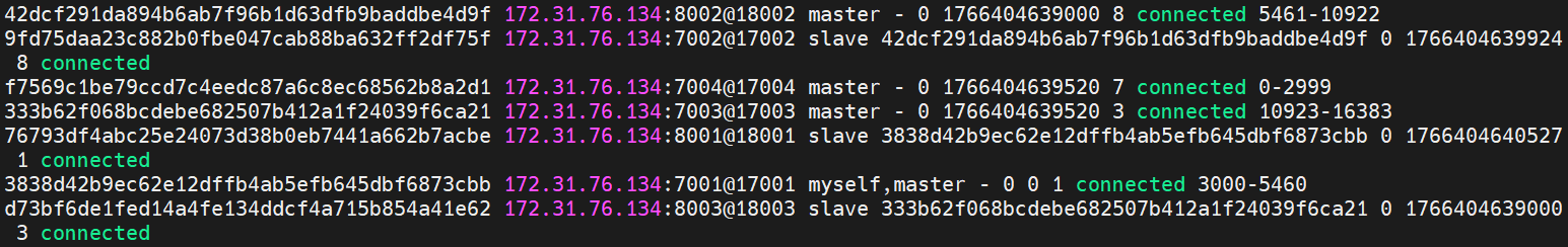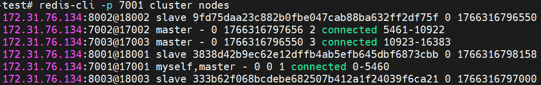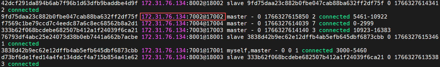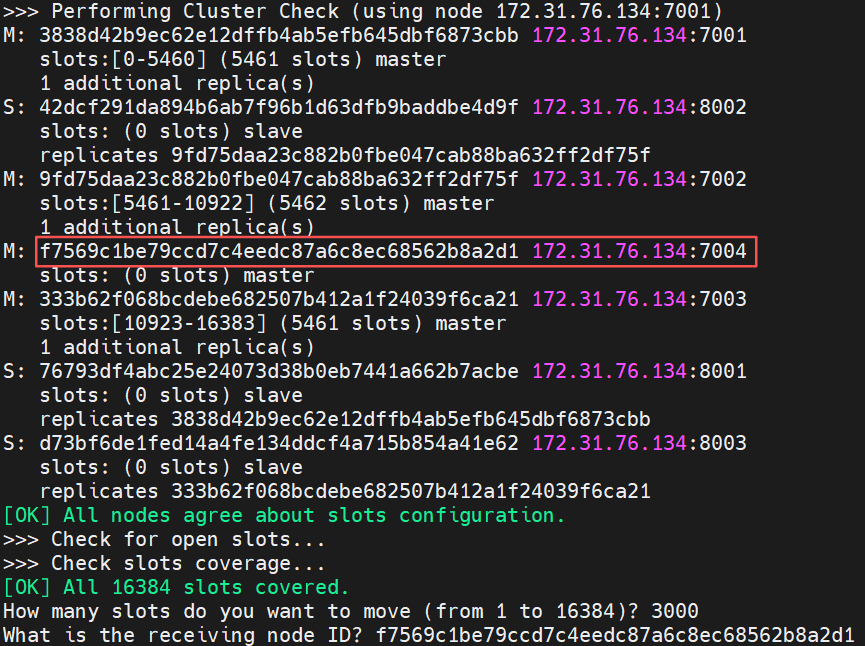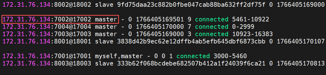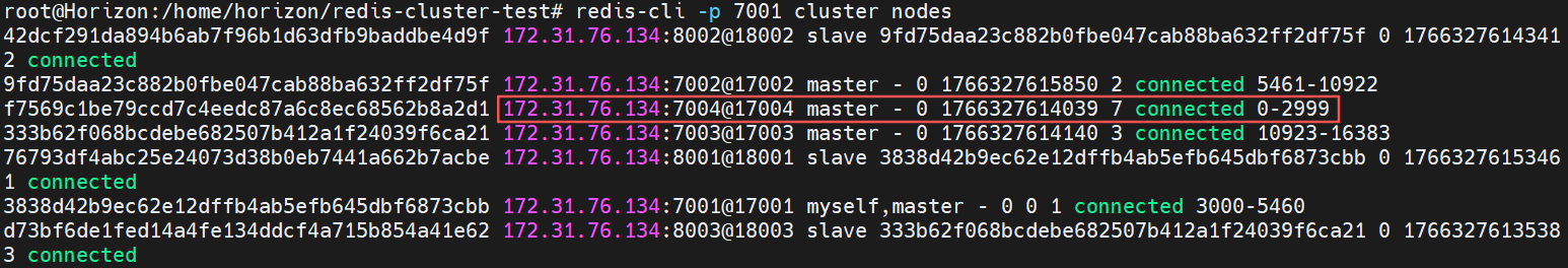 redis-cli --cluster add-node 172.31.76.134:7004 172.31.76.134:7001