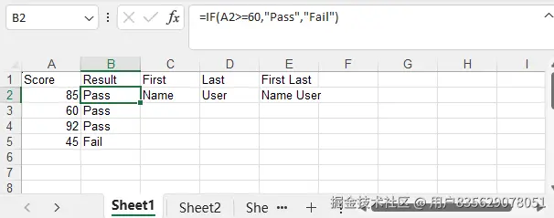 # 插入IF函数:如果分数大于等于60,显示"Pass",否则显示"Fail"