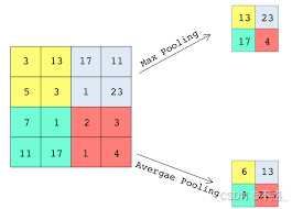 例如,4x4特征图,2x2 max pooling,输出2x2,每个块取最大。这减小尺寸一半,参数少,防止过拟合,还引入平移不变性(物体移动,特征不变)。