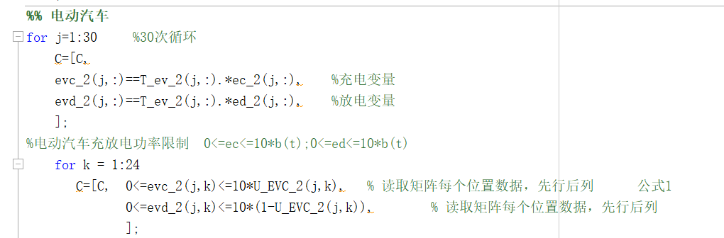 针对此模型,此模型为日前电动汽车优化模型,也就是我提前规定了电动汽车的到达和离开时间,这样我就可以进行优化,这种属于确定性优化。部分代码如下