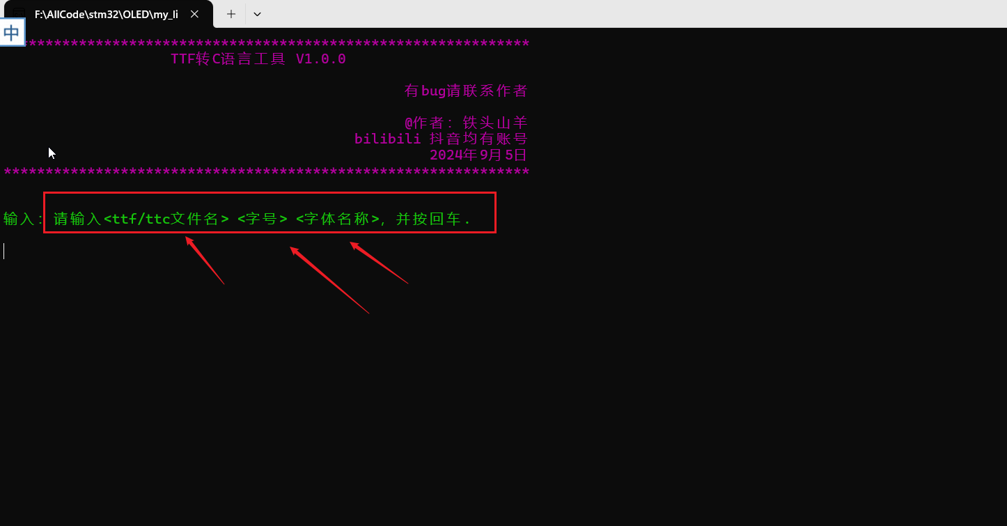 保存后,双击运行同级目录下的ttf2c.exe文件(来自于b站博主"铁头山羊"),