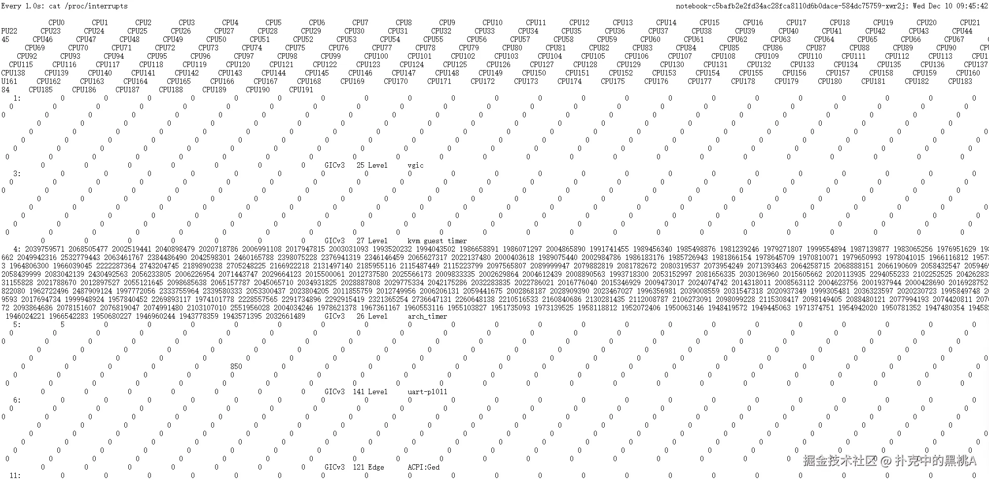 因此,在性能优化时,理解并分析这张表非常关键。 它能帮助你判断是否存在"中断集中于少数 CPU 核"的情况,为后续的绑核优化提供数据依据。