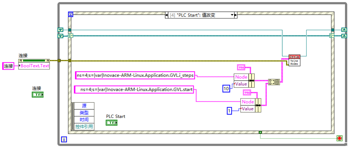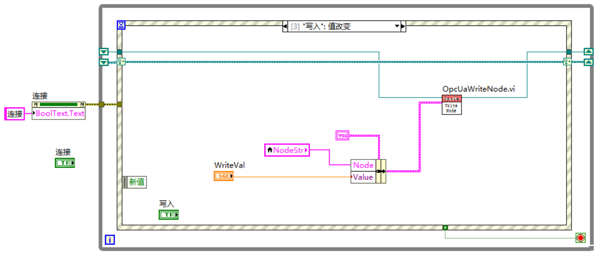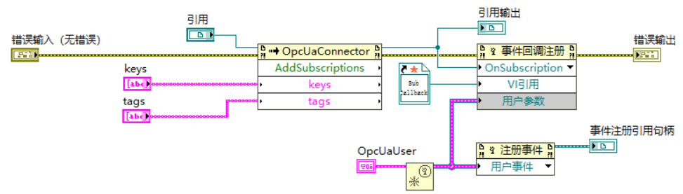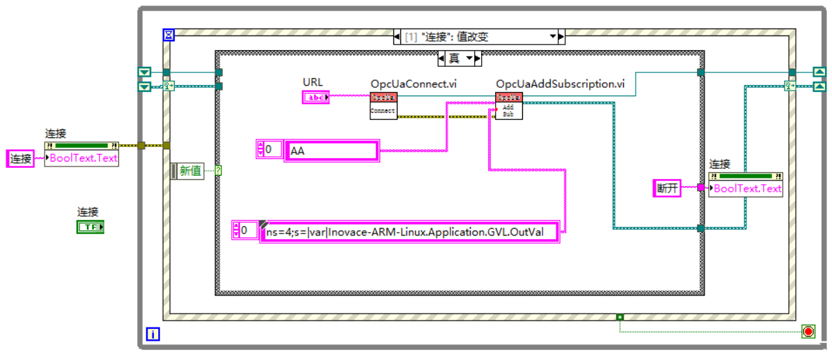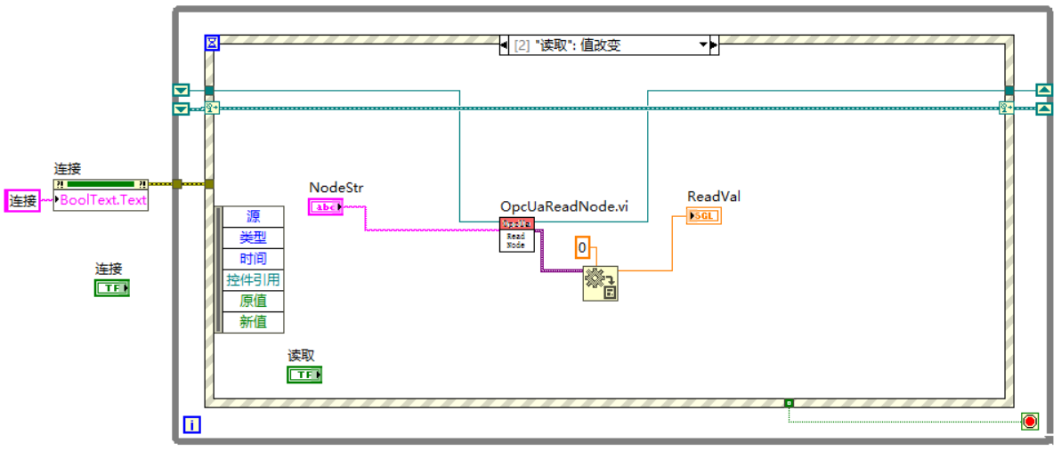 5)编写Labview程序,读写服务器中变量值,创建订阅触发事件;