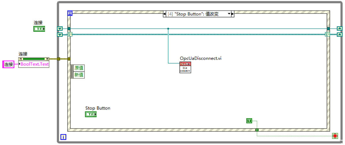 断开OPC连接,程序停止运行;