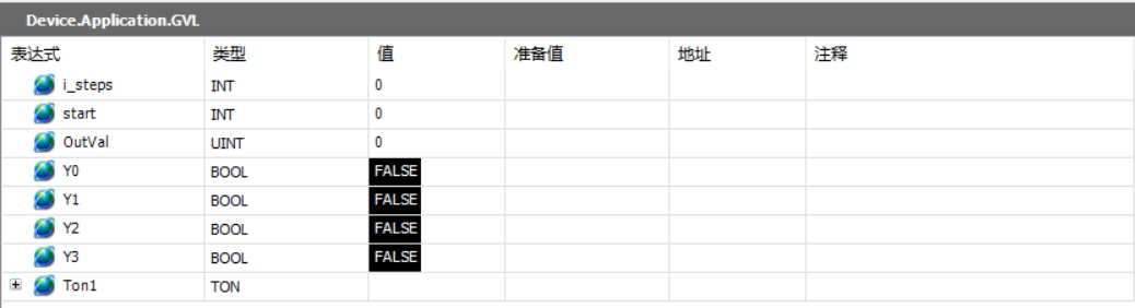 向i_steps变量写10,向start变量写1,触发PLC开始运行程序,请结合上面的PLC程序进行学习;