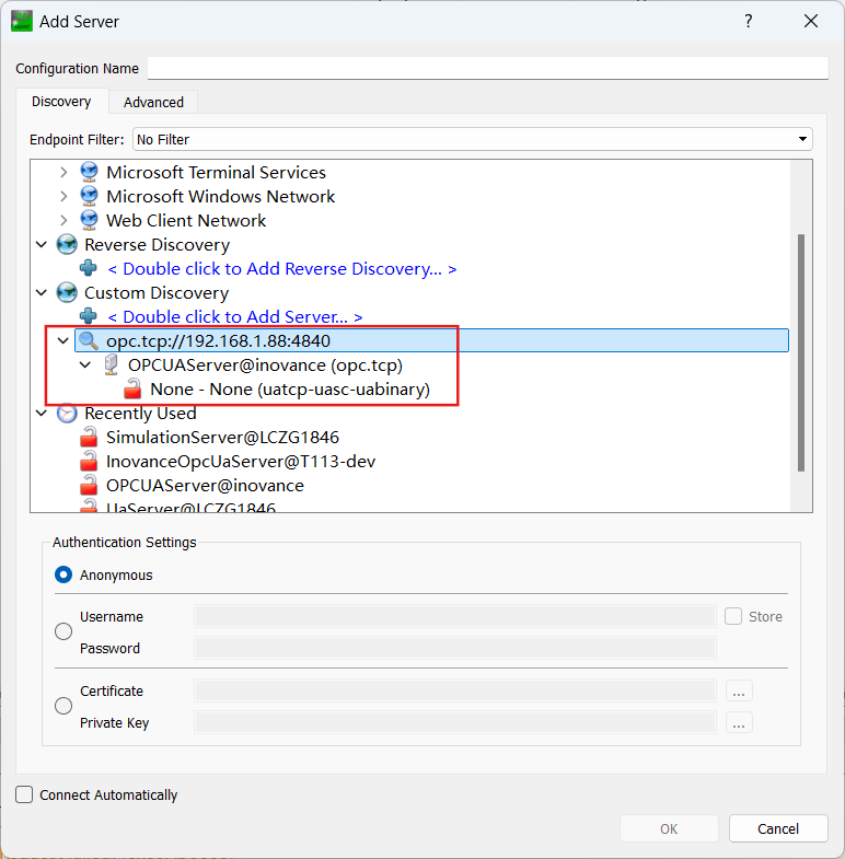 m_OpcUaClient.ConnectServer(ServerUrl);//链接服务器