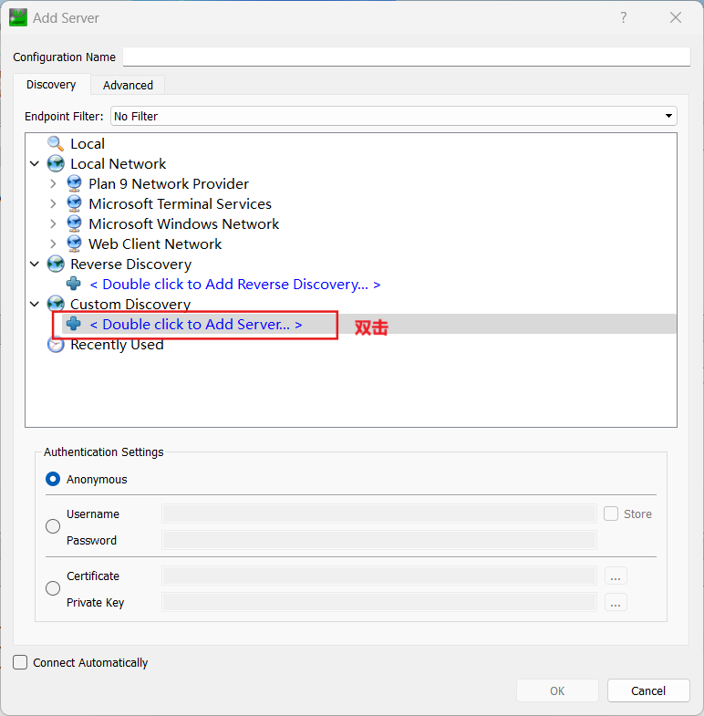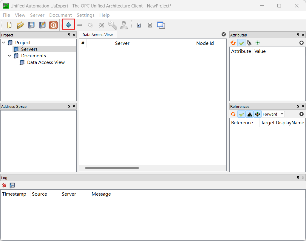 打开UaExpert,此为OPC客户端,用于测试服务器