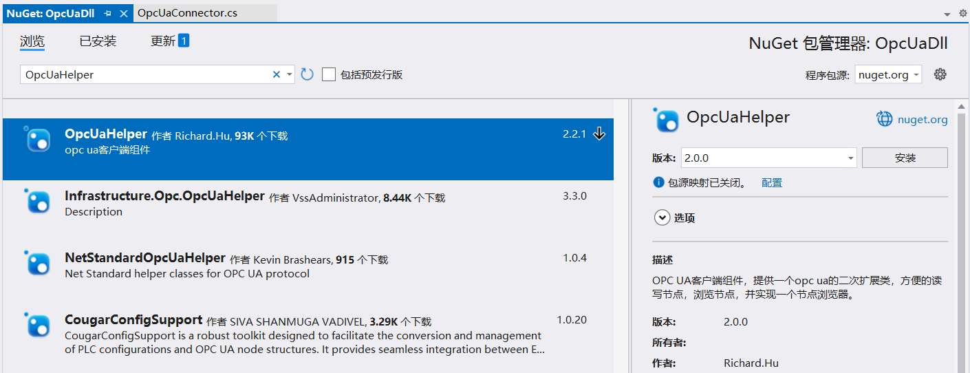 下载OpcUaHelper,用于OpcUa通信。
