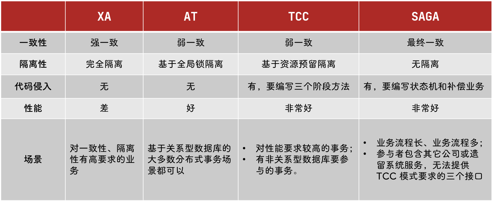 - XA模式依赖数据库机制实现回滚;AT模式利用数据快照实现数据回滚。
