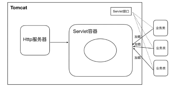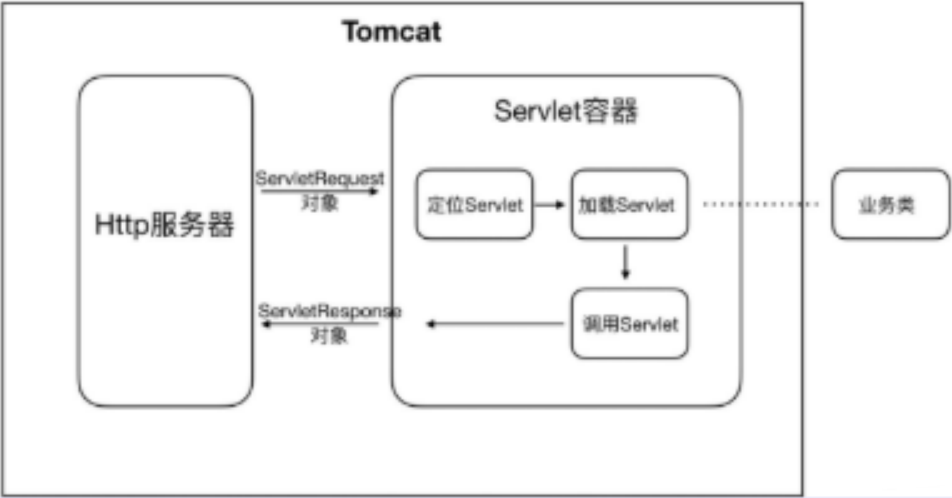HTTP 服务器接收到请求之后把请求交给Servlet容器来处理,Servlet 容器通过Servlet接口调用业务类。Servlet接口和Servlet容器这一整套内容叫作Servlet规范。