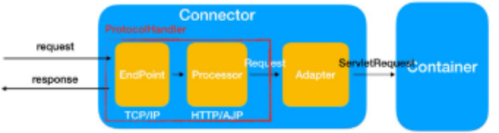 | Processor | Processor是Coyote协议处理接口,如果说Endpoint是用来实现TCP/IP协议的,那么Processor用来实现HTTP协议,Processor接收来自Endpoint的Socket,读取字节流解析成Tomcat Request和Response对象,并通过Adapter将其提交到容器处理,Processor是对应用层协议的抽象 |