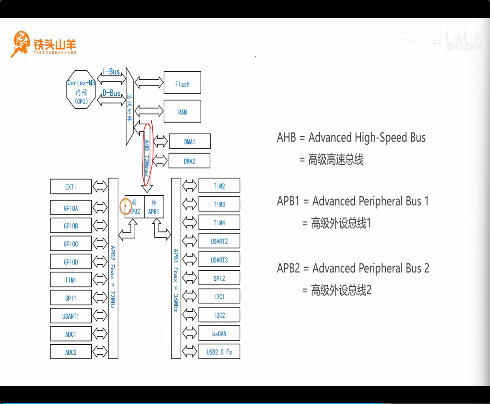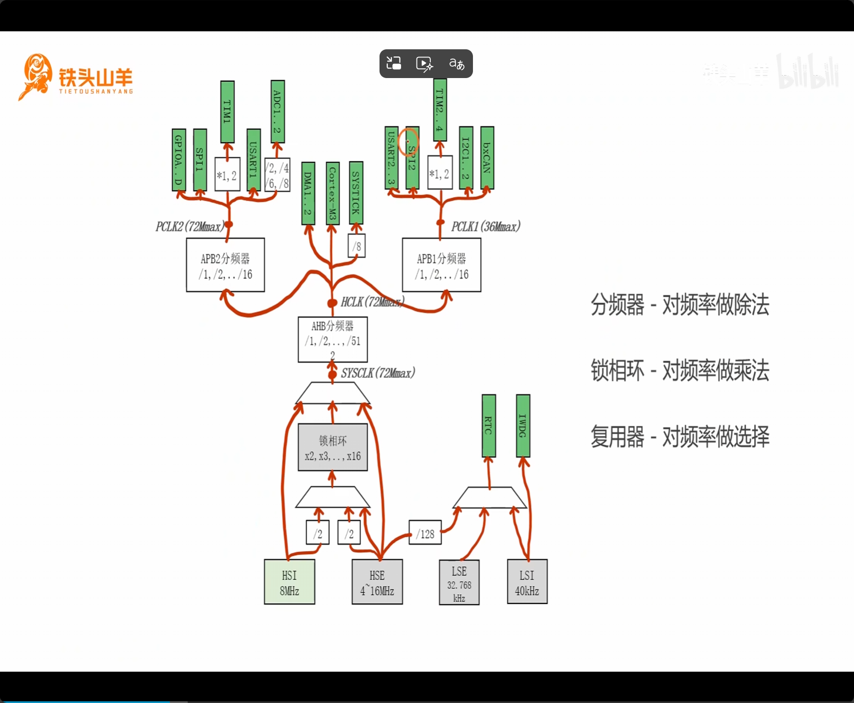 树枝:APB1、APB2 分频器,or 不分频,类似人血管的分支