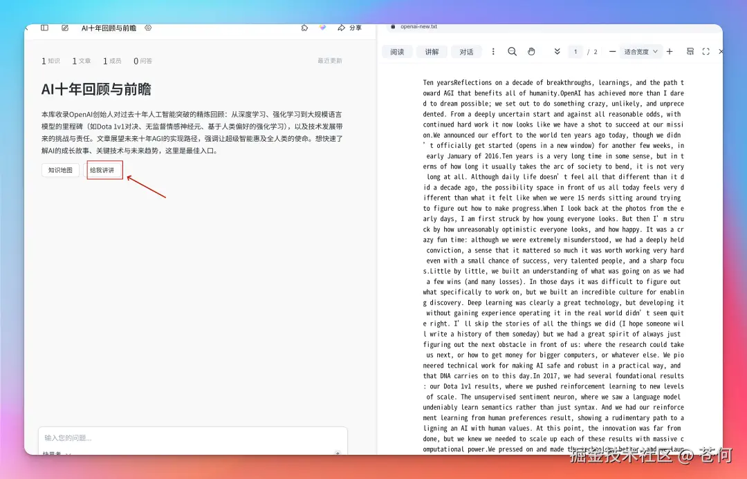 这几十页的文档,一个个去读,花费的时间会很长,在一开始,完全可以交给 AI,先来知识的总结理解,通过塔老师配合图片 PPT,来学习。