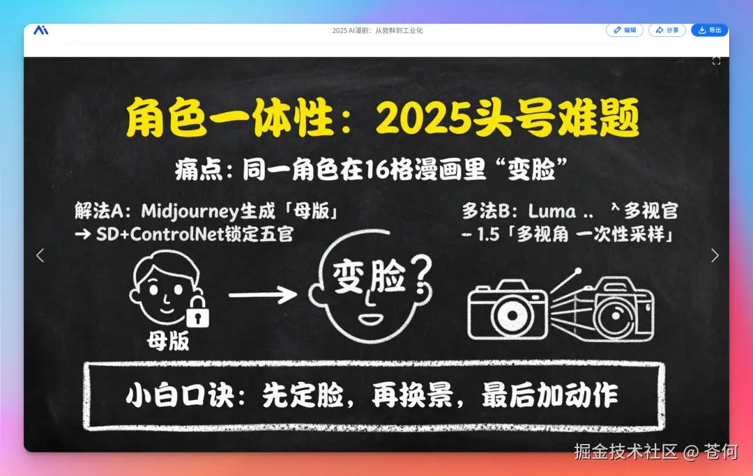 这几天不是一直在研究 AI 漫剧吗?刚好周六有关于 AI 漫剧的主体沙龙,就用秘塔来搜索信息,然后生成一些图片 PPT,用来分享。