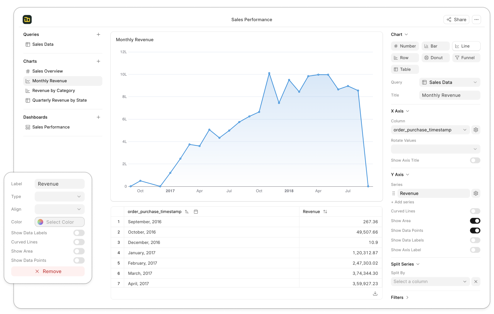 - 数据源:集成数据库(MySQL、PostgreSQL、DuckDB、BigQuery 等)、CSV、Excel 文件等多种数据源。