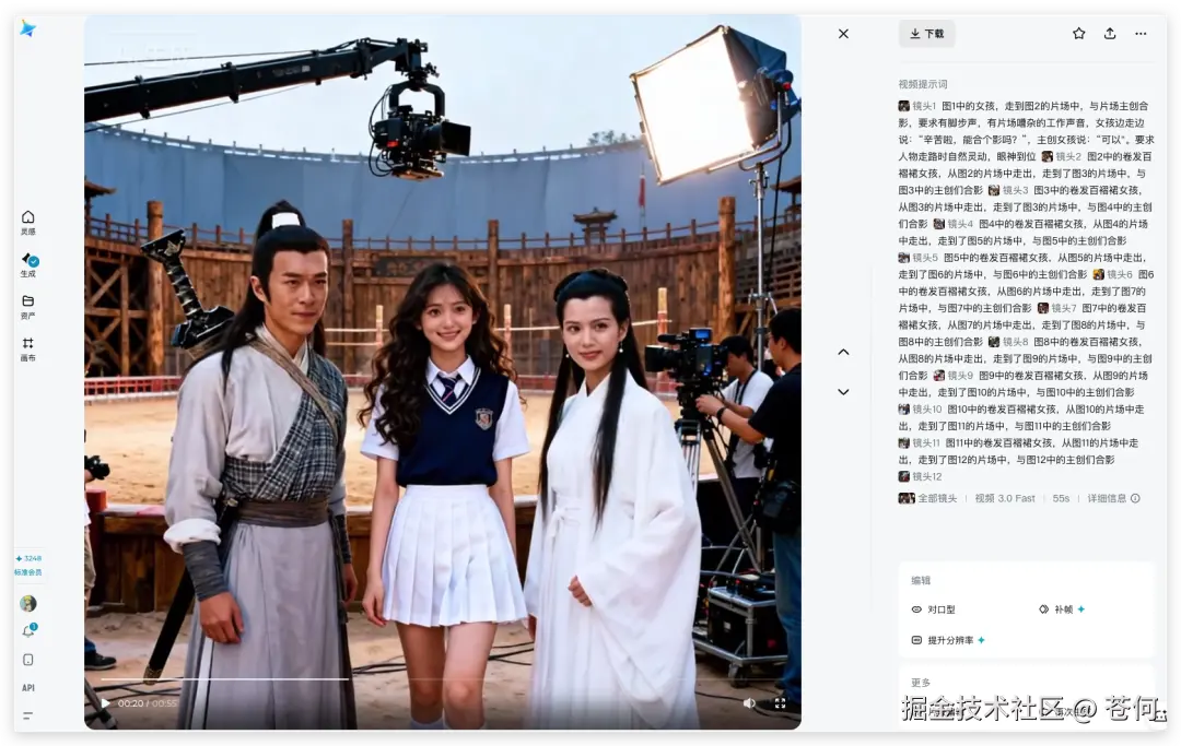 我做的这支视频的全部流程基本都能在即梦网页版的画布里完成,真的是"一站式AI片场"。本着独乐乐不如众乐乐的宗旨,我来给大家分享下如何用即梦的"AI片场"完成这种"AI探班"的视频。按照惯例,教程同样主打有手就行,就能复刻出同样爆款视频。