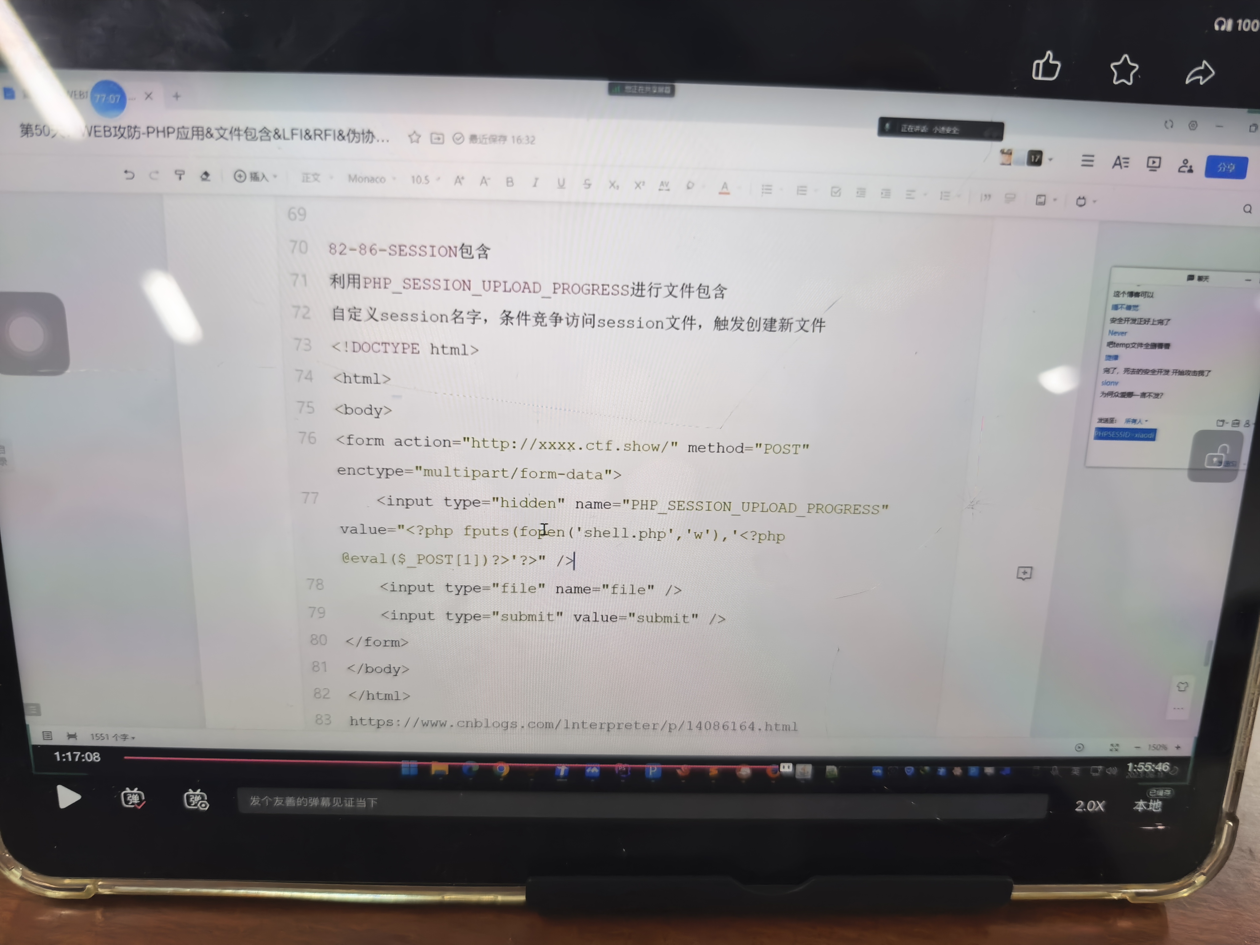 正因为session文件会被PHP快速清空/删除,所以在利用 PHP_SESSION_UPLOAD_PROGRESS 时,必须在表单提交(创建session文件)和PHP清理session文件的极短时间窗口内,快速发起文件包含请求,才能在session被清空前执行里面的恶意代码。