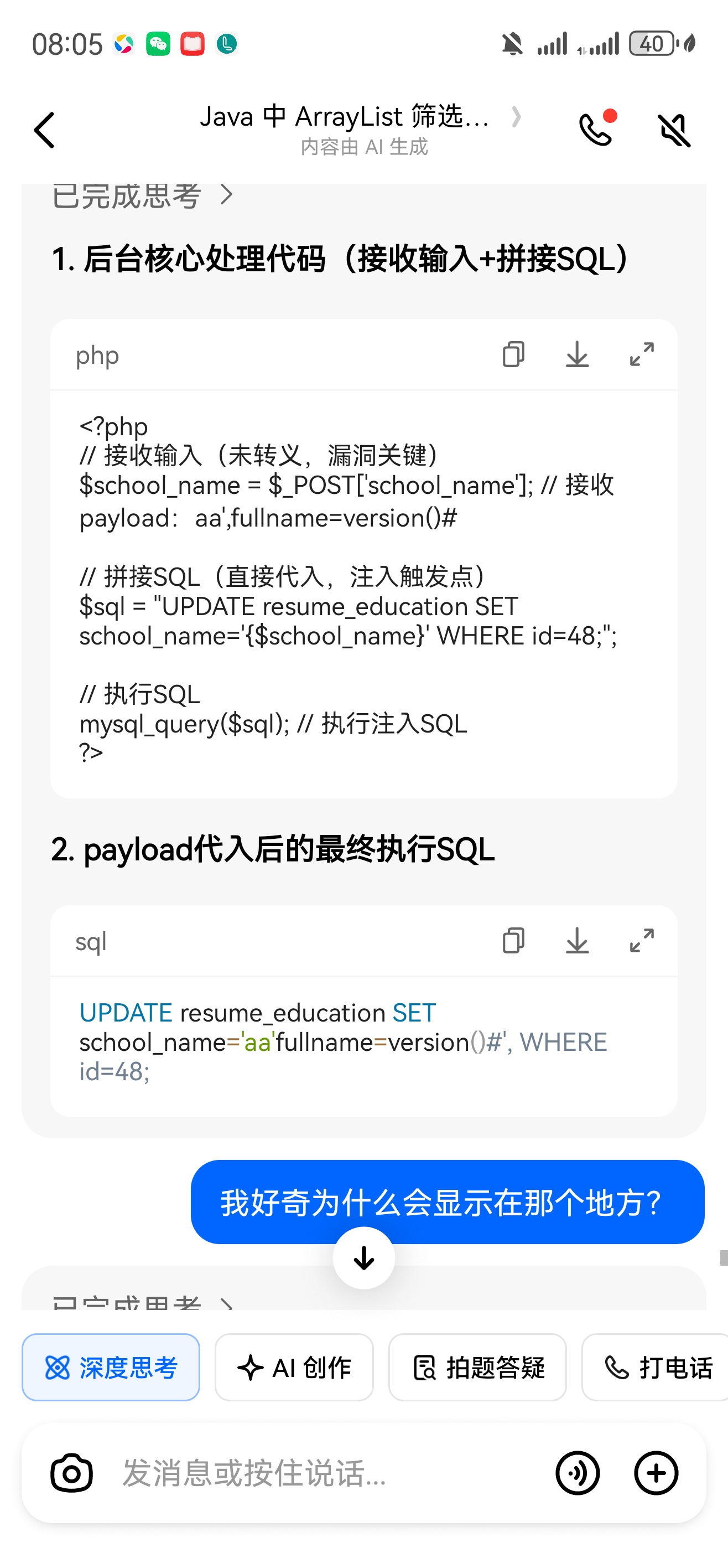 SQL执行函数兼容多语句:后台使用的数据库函数支持执行多条语句(如PHP的 mysqli_multi_query() ),而 mysql_query() (你之前代码用的)仅支持单条,无法触发堆叠。