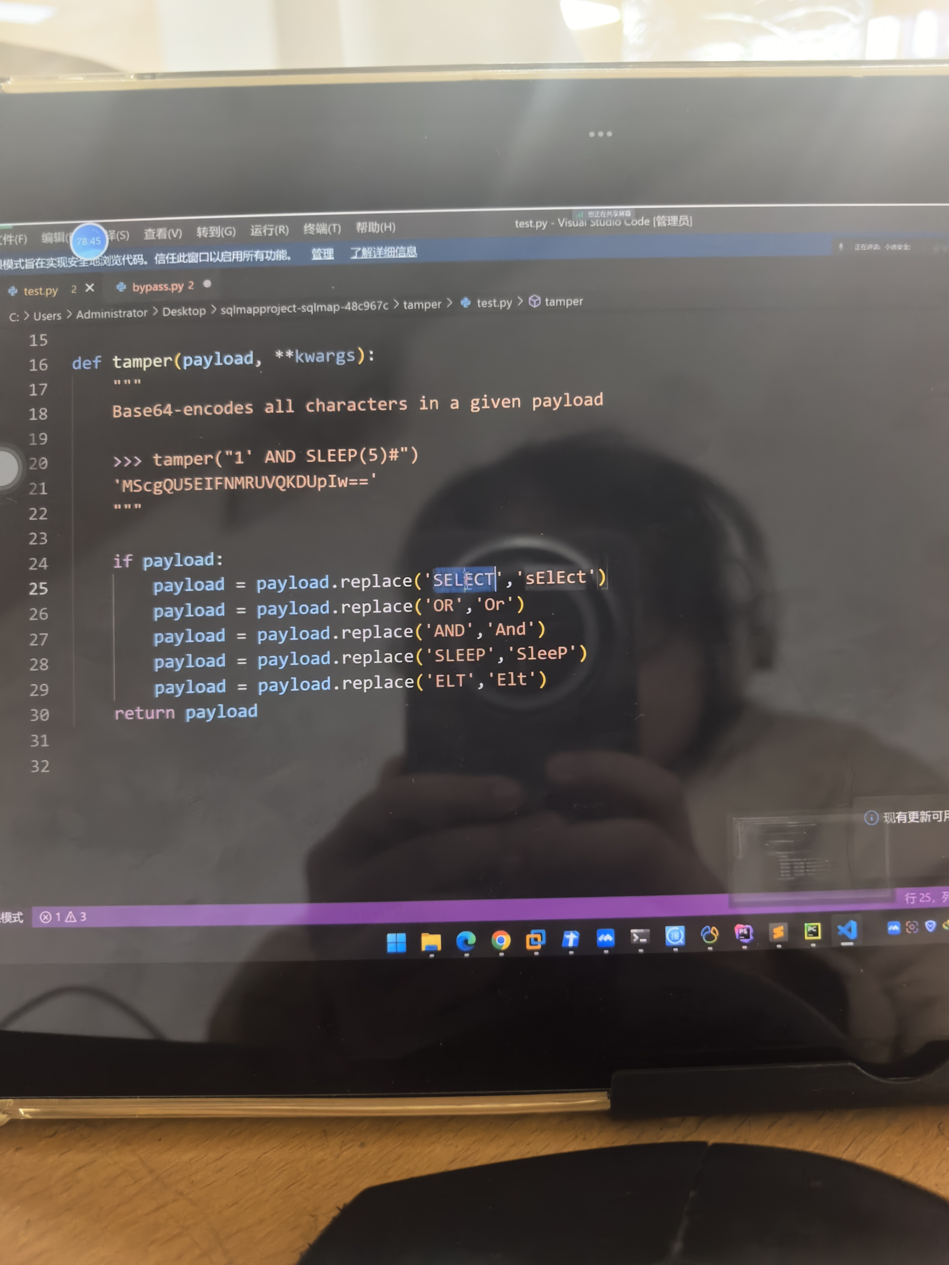 添加tamper脚本对payload编码,绕过目标的过滤机制: