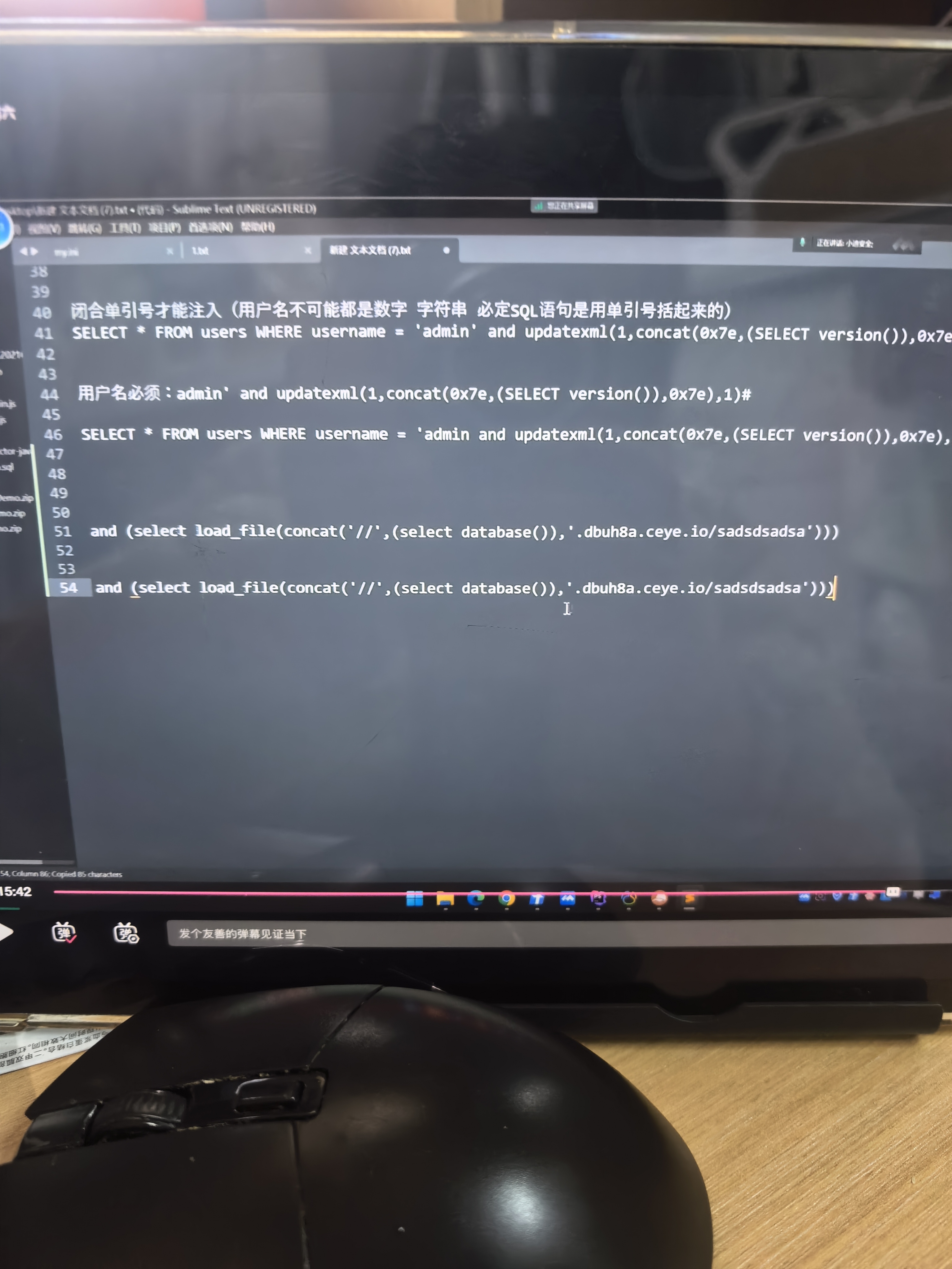 他好像是通过这个注入语句,然后再通过读文件把他带出去,花里胡哨的。