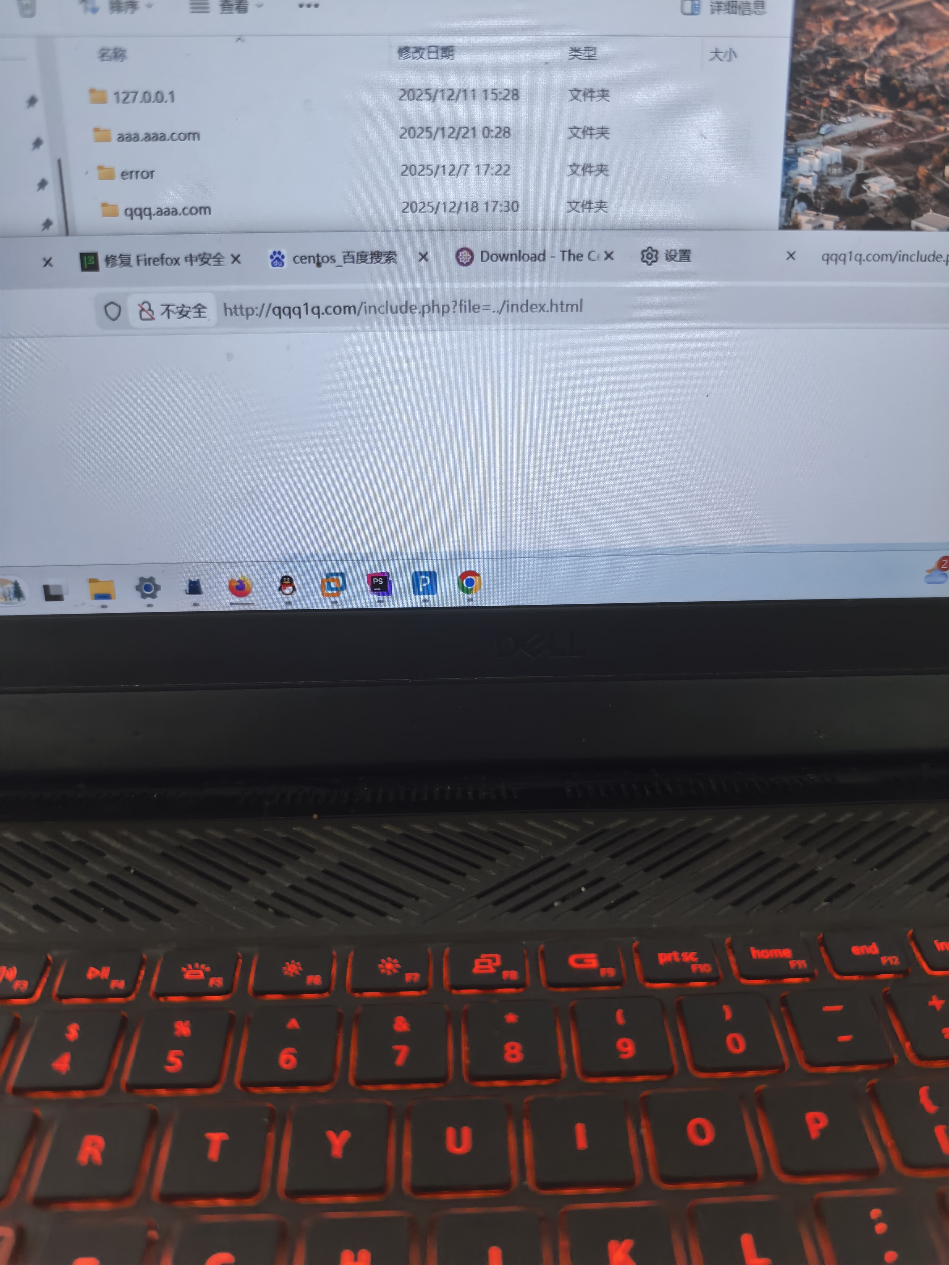 总结:前端点击只是"提交恶意参数",服务器的PHP特性把参数值写成本地文件,文件包含漏洞执行这个文件里的代码------整个过程的核心是服务器的配置和漏洞,前端只是触发的"开关"。