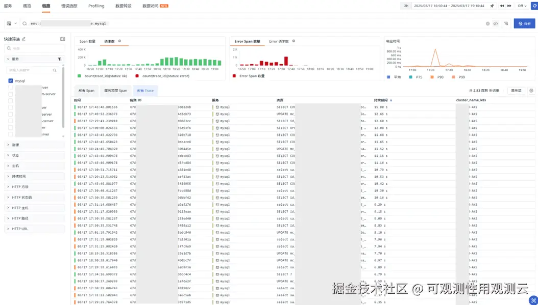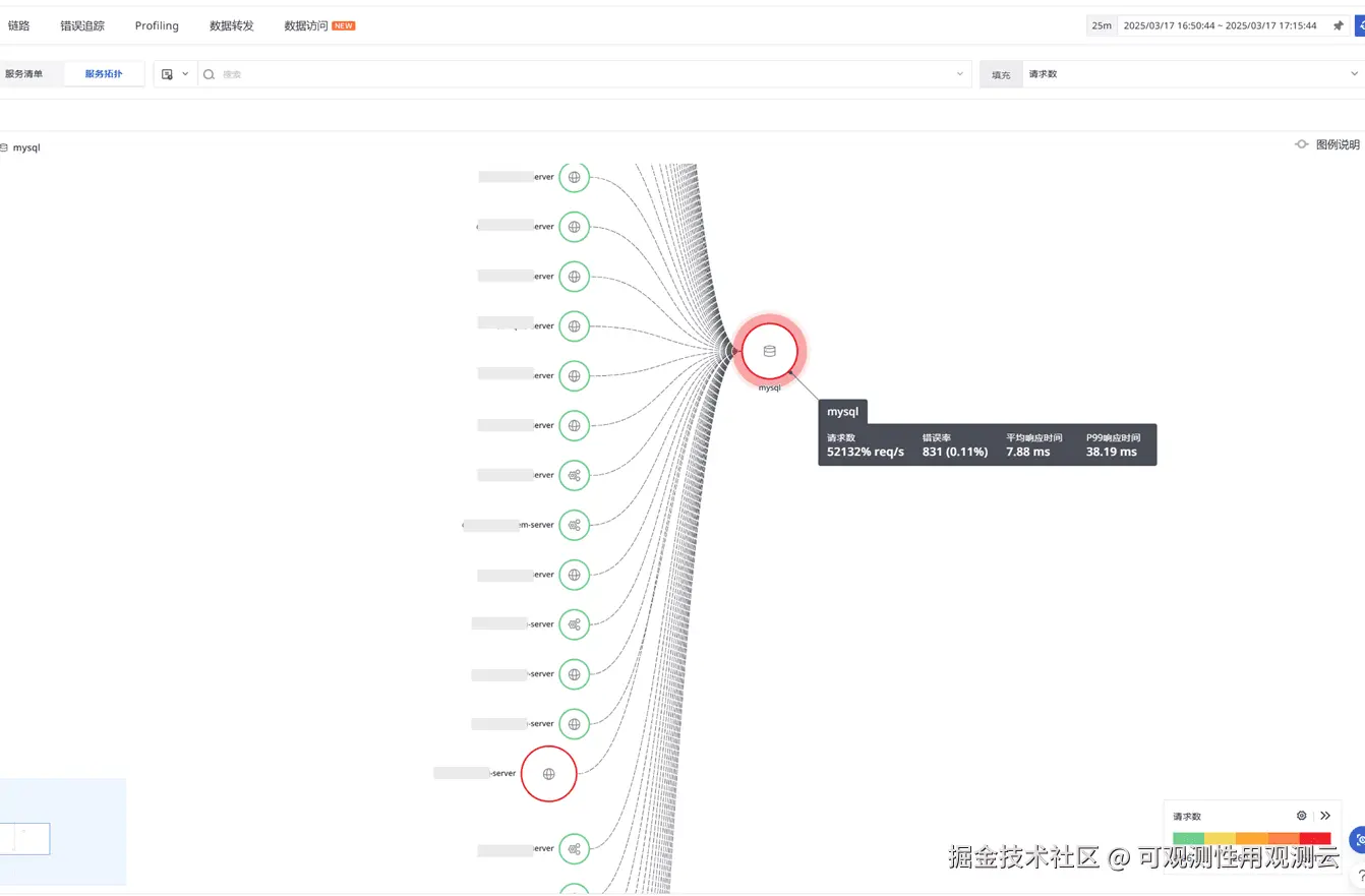- 分析 MySQL 的请求与调用,很多服务都会调用 MySQL,每秒 5 万多请求调用