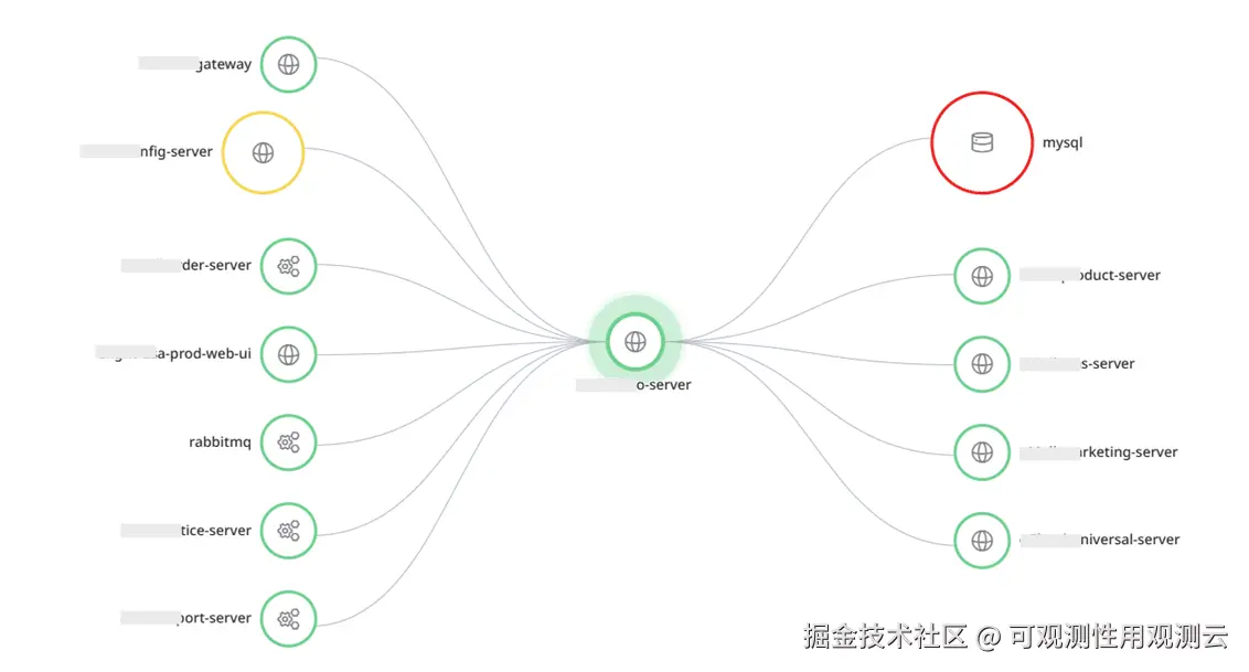 - 对 MySQL 调用最多的服务分析上下游调用情况,发现很多服务都会通过该配置服务调用 MySQL,建议考虑是否可以增加 MySQL 缓存优化