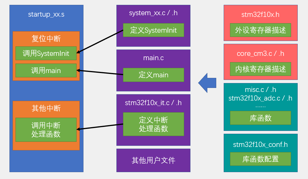 ③工程里对应建立Start、Library、User等同名称的分组,然后将文件夹内的文件添加到工程分组里