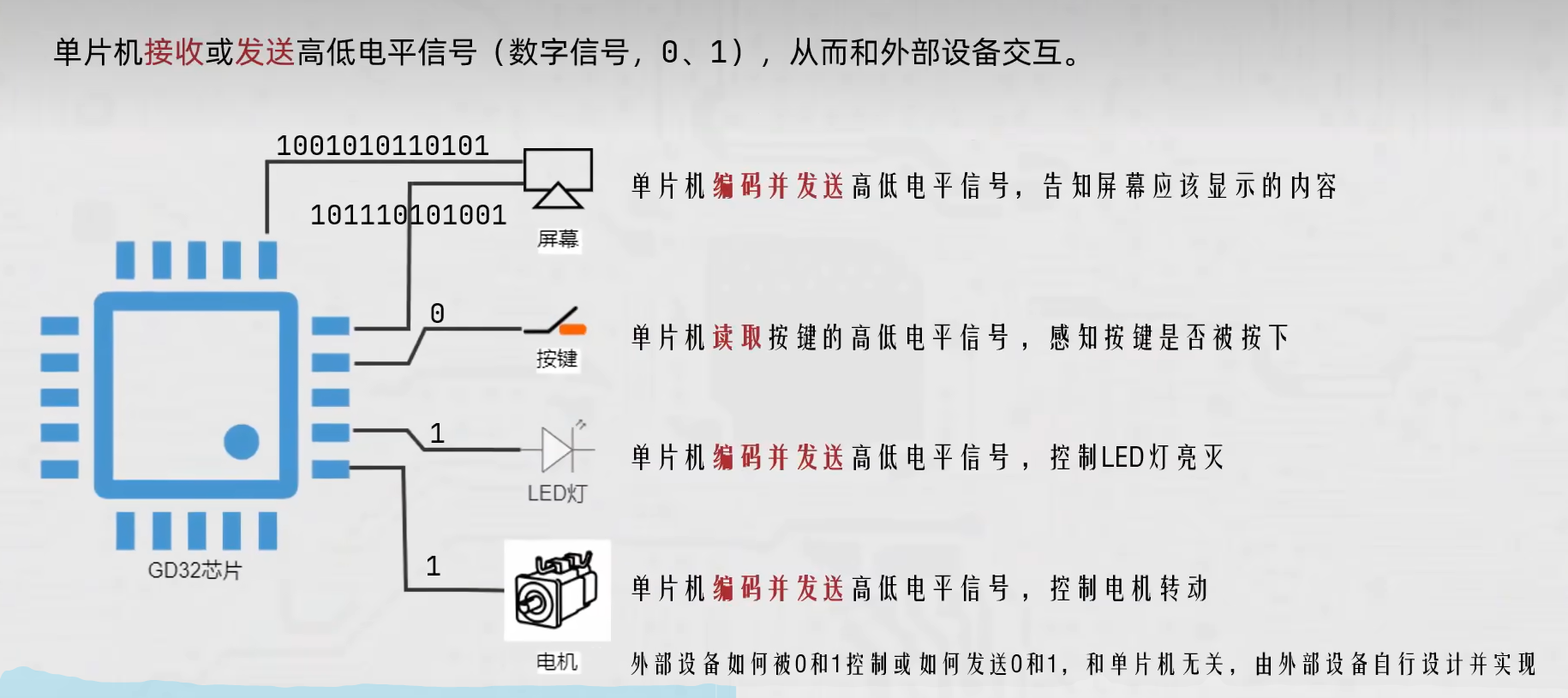 单片机通过 数字信号 (高低电平 ) 控制外围设备。