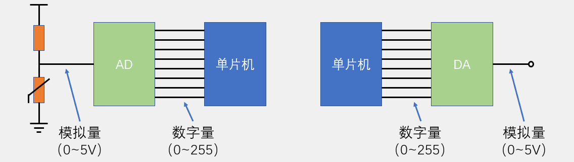 •AD(Analog to Digital):模拟-数字转换,将模拟信号转换为计算机可操作的数字信号