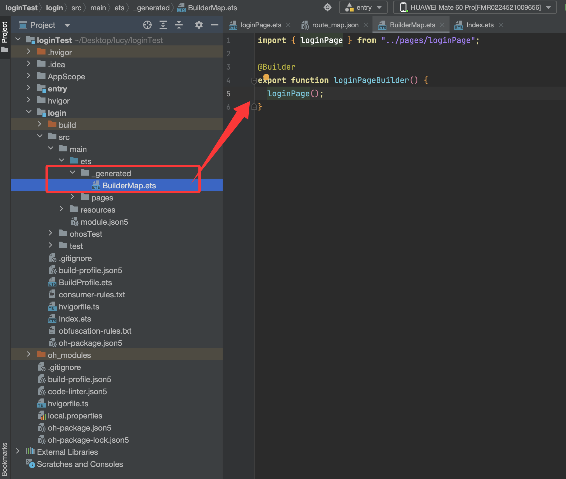 在loginTest的login模块中,创建BuilderMap.ets,定义页面的构建函数