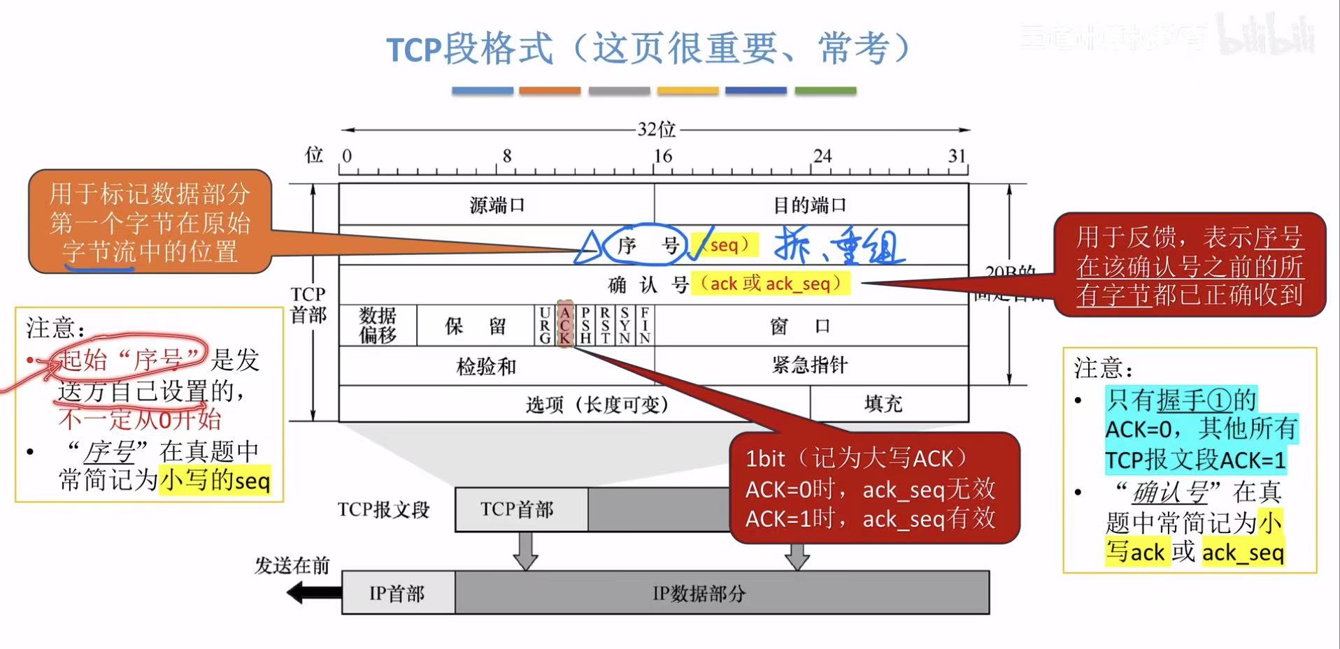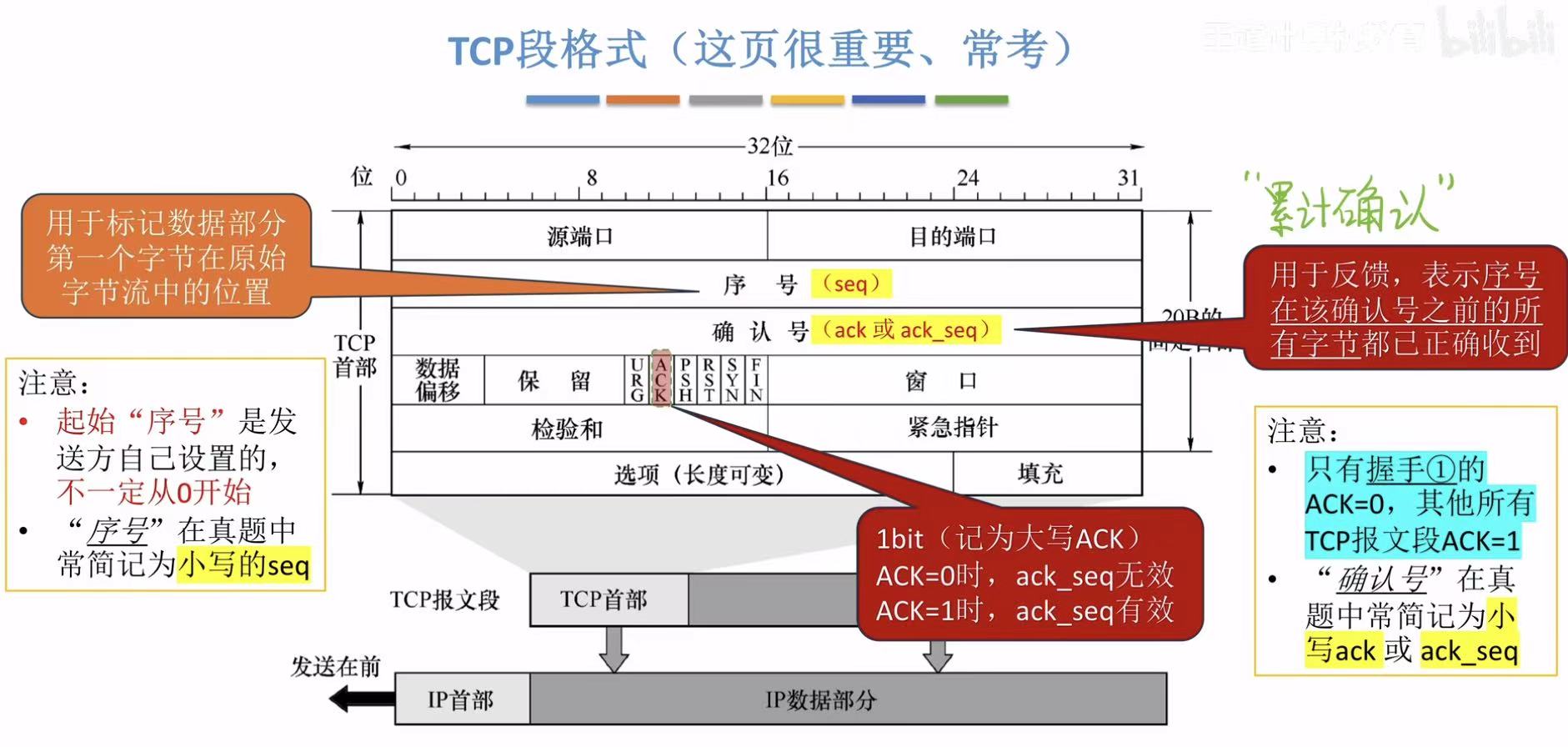- 序号seq :用于标记数据部分第一个字节 在原始字节流 中的位置,发送方 自己设置