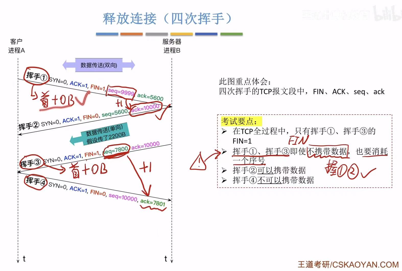 如果在客户的时间等待状态 中又接收到挥手3,就会重新发送挥手4,直到时间等待状态可以平安无事地过去。