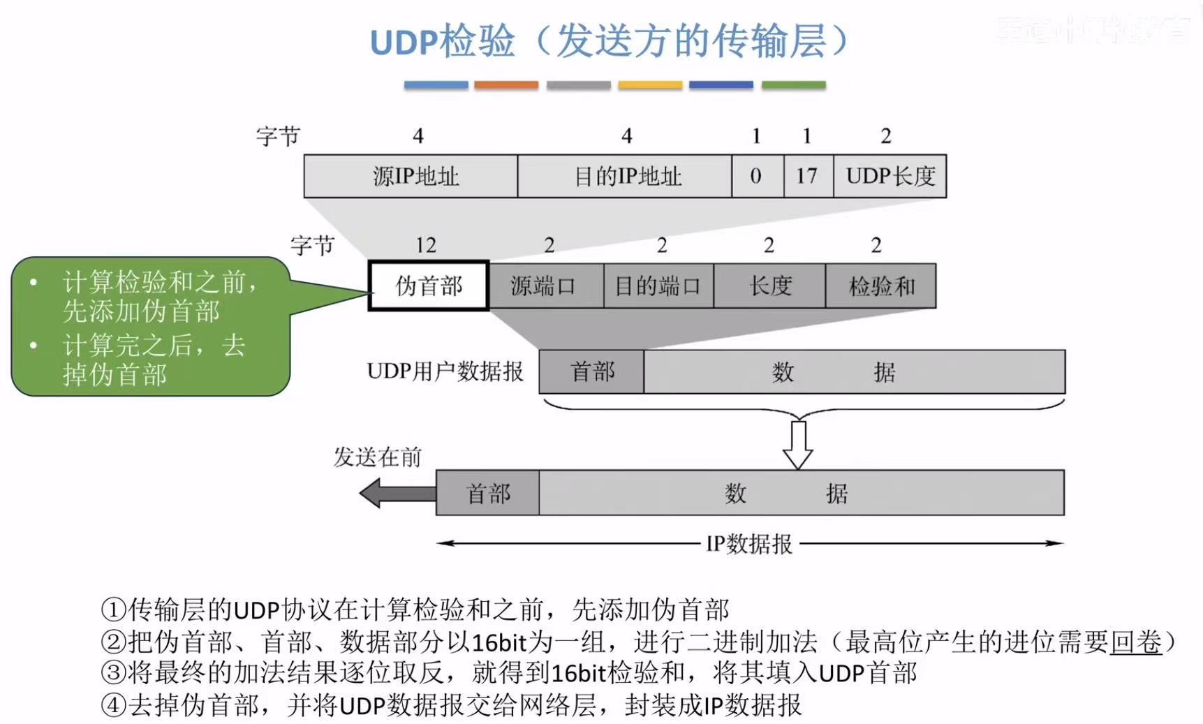 - IP检验不需要伪首部,仅IP首部16bit16bit地相加